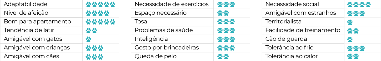 Adaptável a diferentes ambientes, o Pug se adapta bem à vida em apartamentos ou casas pequenas, desde que receba atenção e afeto diário. Apesar de seu porte compacto, pode ser bastante ativo e brincalhão, exigindo exercícios moderados e passeios curtos para manter sua saúde e evitar o sobrepeso.